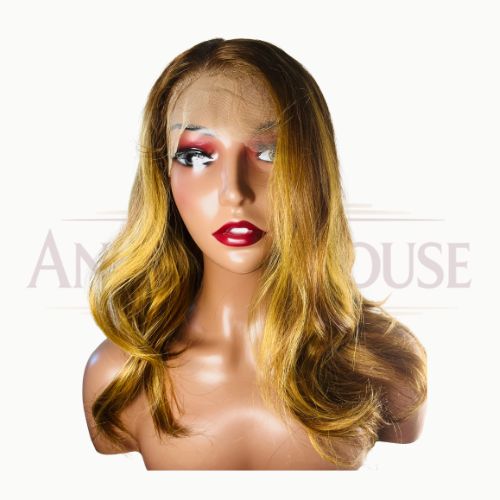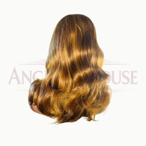 Perruque légèrement ondulée de 18 pouces, marron doré deux tons. HD lace 13×6 pour un rendu naturel, confortable et facile à coiffer.
