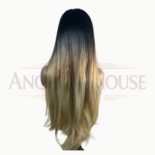 Perruque lisse de 30 pouces, couleur trois tons : noir, marron foncé et blond. HD lace 13×6 pour un rendu naturel, fluide et élégant.